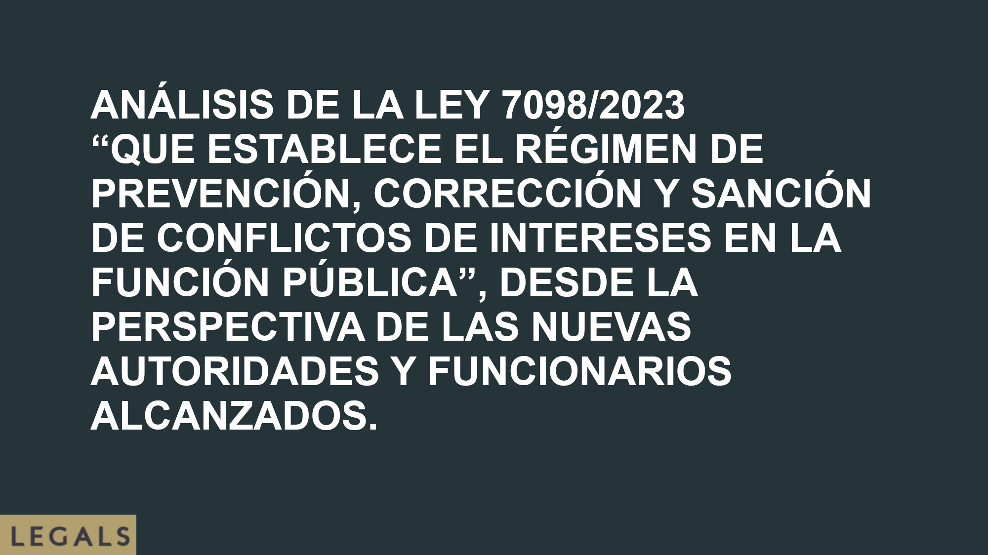 ANÁLISIS DE LA LEY 7098/2023 “QUE ESTABLECE EL RÉGIMEN DE PREVENCIÓN, CORRECCIÓN Y SANCIÓN DE CONFLICTOS DE INTERESES EN LA FUNCIÓN PÚBLICA”, DESDE LA PERSPECTIVA DE LAS NUEVAS AUTORIDADES Y FUNCIONARIOS ALCANZADOS. En el presente documento se analiza la Ley 7098/2023 (en adelante “la Ley”) desde la perspectiva de las autoridades y funcionarios que [...]